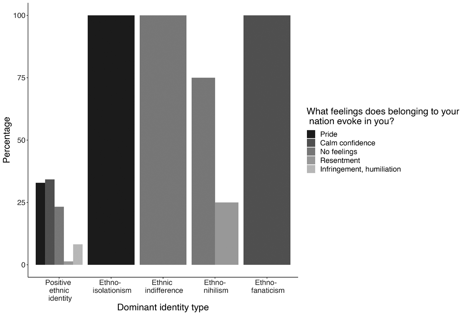 Fig. 5. Feelings associated with belonging to one’s nation in participants with different types of ethnic identity