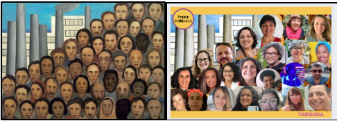 Following this, researchers presented a reconstruction of the painting Os Operários by Tarsila do Amaral (Fig. 2), integrating their own faces into the composition. This collective re-imagining of a Brazilian symbol of labor and diversity functioned as an act of curriculum de-encapsulation (Liberali, 2023), as it brought cultural, historical, and political imagery into the shared object of reflection. The proposal was that diversity and the fight for justice, as expressed by the painting, would also represent the research group.