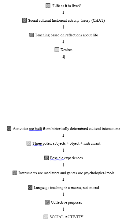 This article responds to that call by examining a teacher education experience rooted in CHAT and organized around the concept of Social Activity (Liberali, 2009). This approach emerges from a Brazilian tradition of Applied Linguistics, which views language education as inherently political and socially situated (Moita Lopes, 2006). It aims to move beyond technicist or neoliberal paradigms, instead promoting agency, collaboration, and critical reflexivity in teacher development. As we emphasize in this article, this requires a reorientation of teacher education programs to center the lived experiences, affective dimensions, and collective engagements of educators.
