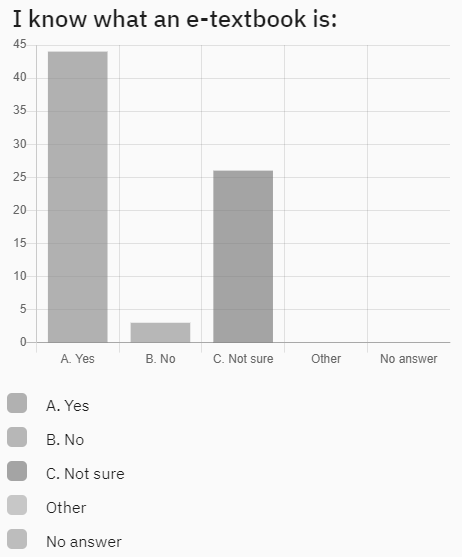 Figure 1 reveals that while some students have had exposure to e-textbooks, it is not widespread.