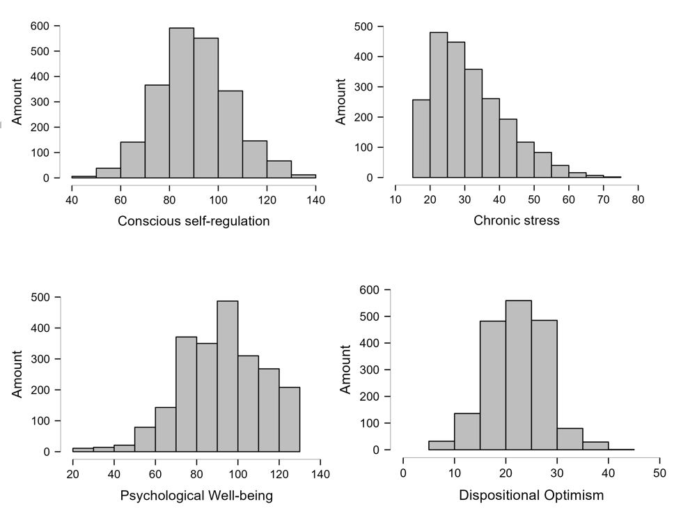 Accordingly, the aim of the present study was to assess the severity of chronic stress among students and to examine the specific features of its associations with conscious self-regulation, dispositional optimism, and psychological well-being in a large Russian sample.
