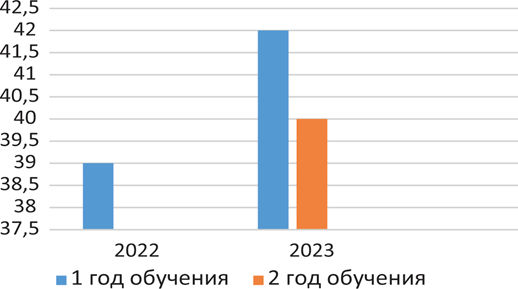 в 2023 году обучение прошли все 82 сотрудника. Из них 43 сотрудника по первому циклу занятий (первый год обучения), 39 сотрудников по второму циклу занятий (второй год обучения). Данные представлены в табл. 2.