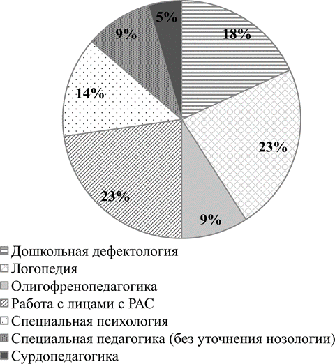 Все профили подготовки были объединены в укрупненные группы: дошкольная дефектология, логопедия, олигофренопедагогика, работа с лицами с РАС, сурдопедагогика, специальная психология, специальная педагогика (без уточнения нозологии).