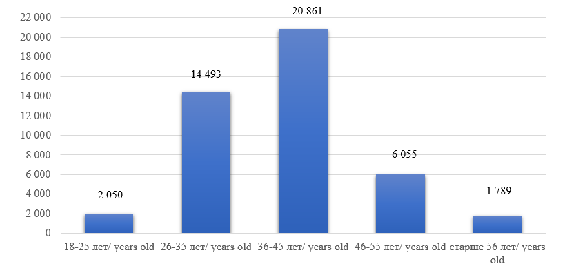 Проведенный анализ контингента, принявшего участие в просветительских мероприятиях второго этапа, показал, что наиболее активной аудиторией являются родители 36—45 лет и 26—35 лет (рис. 1).