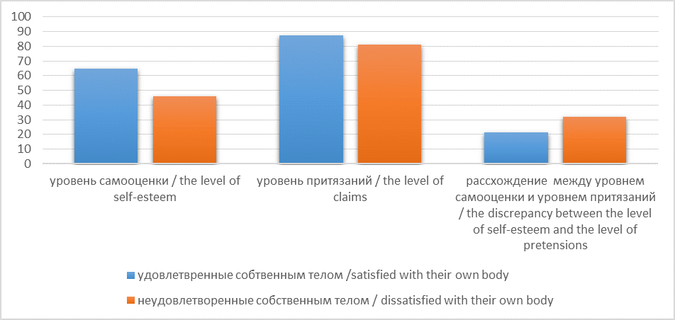 Так, оказалось, что более высокая самооценка характерна для группы девушек, удовлетворенных своим телом. У девушек, неудовлетворенных своим телом, больше расхождение между уровнем самооценки и уровнем притязаний. Это говорит о том, что их «Я—реальное» далеко от «Я—идеального».