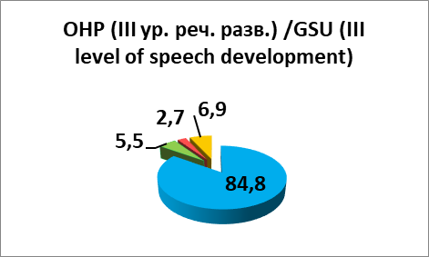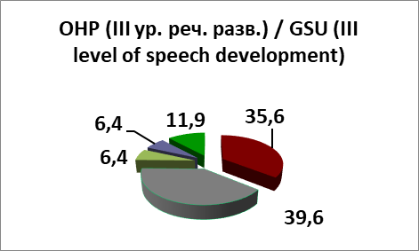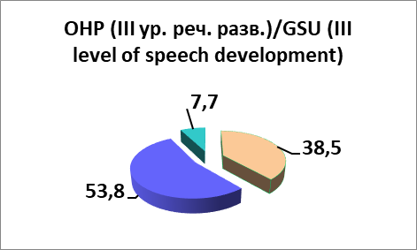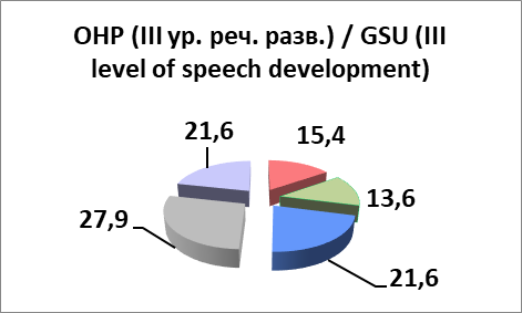 с преобладанием при ОНР (III уровень речевого развития) / with a predominance of GSU (III level of speech development) |
