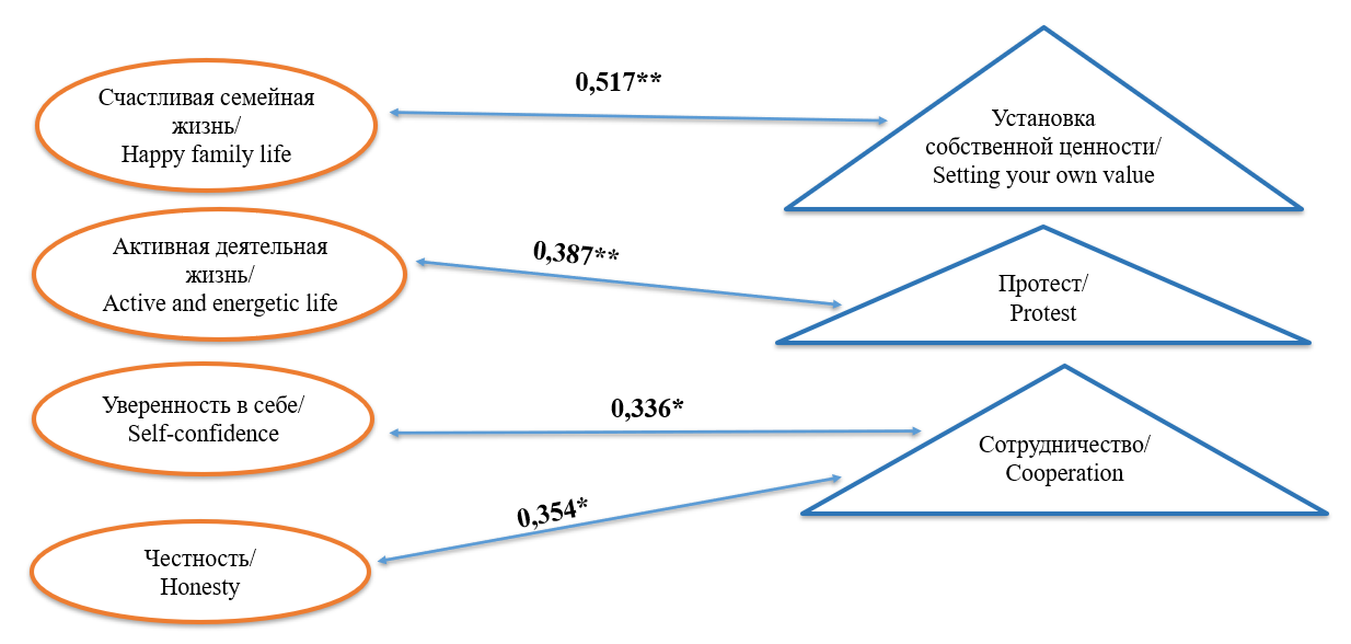 Notes: «**» — the relationship is significant at the level of p<0.01; «*» — the relationship is significant at the level of p<0.05