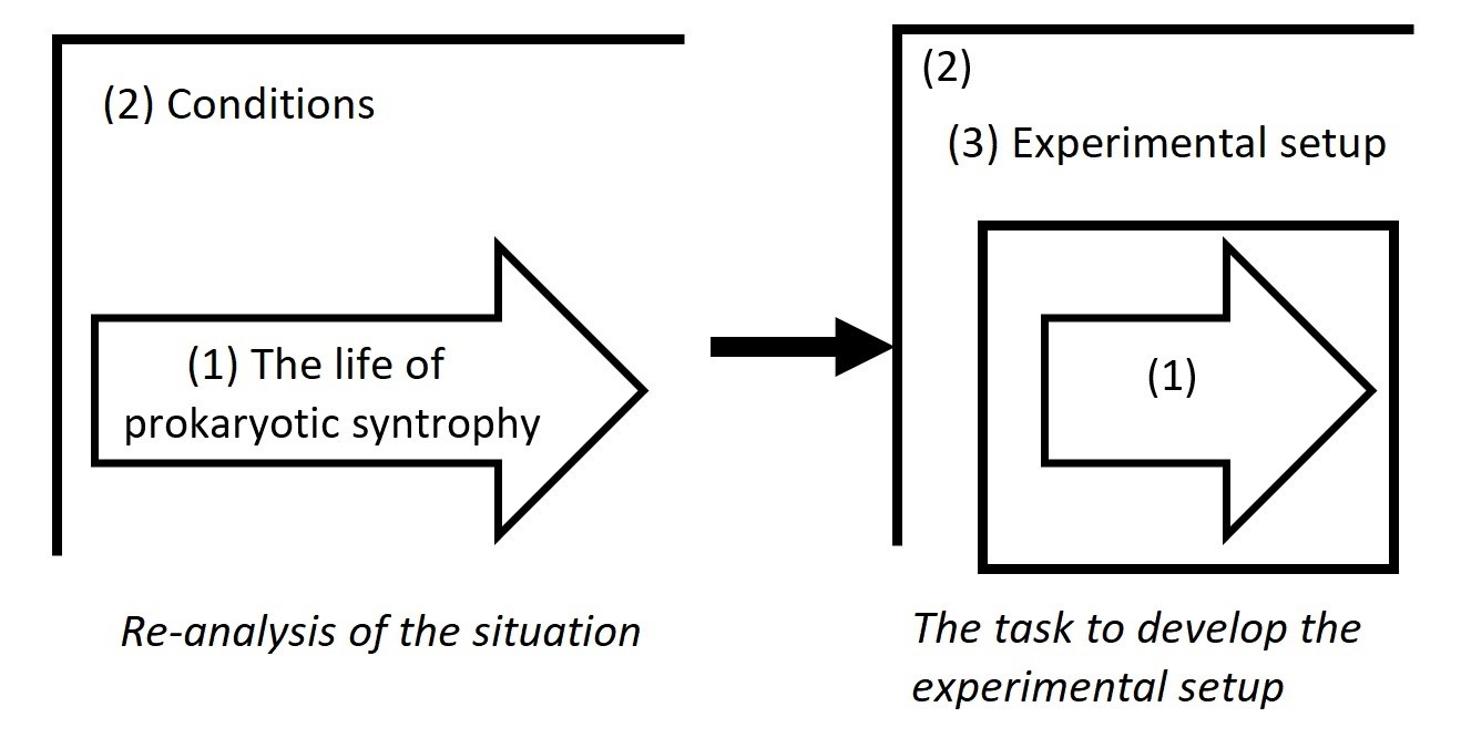 - конкретизировать проектный замысел: превратить предметное понятие «синтрофии» в инструмент описания процесса, который должен быть реализован в ходе эксперимента;