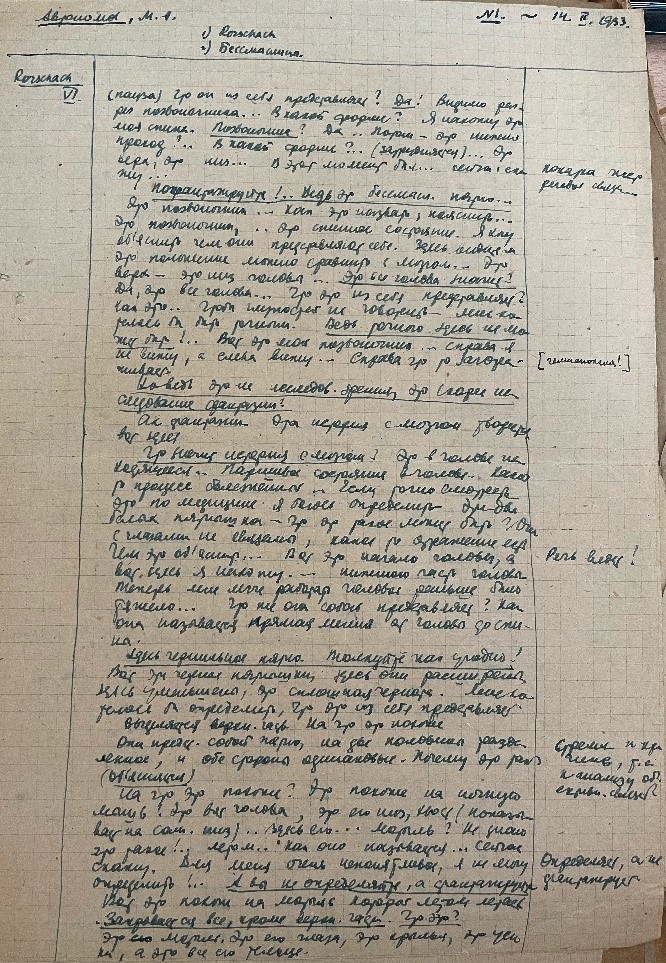 Рис. 1. Первая страница протокола теста Роршаха проведенная А.Р. Лурия 14.02.1933