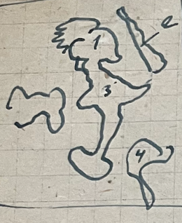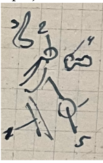 14. А теперь еще растолкуйте какие-нибудь детали. В общем это идет игра в цирк12. Они хотят создать как-нибудь игрушку, кружатся, может быть, они веселятся, играют, танцуют и, наверное, делают прыжки. В общем, это карикатура. А в каком состоянии? Карикатура для… это просто японцы. Потому что это очень маленькие люди и самые подвижные, они хотят создать какую-нибудь игру |