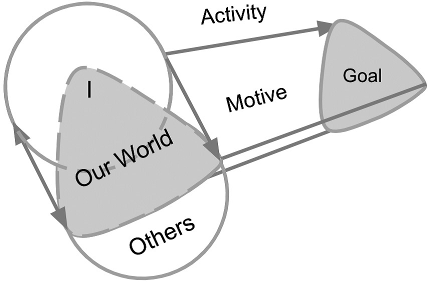 На эту досознательную передачу физиологических ритмов и поведенческих паттернов между людьми указывает множество современных подходов: эпигенетика и теория трансгенерационной травмы (Yehuda, 2009), генно-культурная коэволюция (Laland, Brown, 2002), исследования синхронизации между людьми (Nowak, 2017; Wlodarczyk, 2020) и др. В культурно-исторической психологии о таком слиянии говорит понятие «Пра Мы» Выготского и, например, понятие «интенциональный синтез» (intentional synthesis) А. Шварц (рис. 1; Schwarz, 2011). Такой непроизвольный резонанс между людьми, это ощущение взаимного доверия и душевного тепла, рассматривается нами как неотъемлемая основа для всех последующих уровней организации совместности.