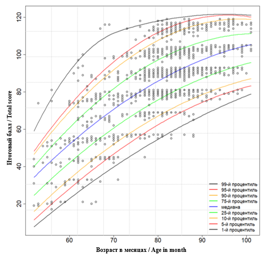 Для получения нормативных показателей по рисуночному тесту на пассивный словарный запас общая выборка детей была разделена на 8 групп в соответствии с возрастом от 4,5 до 8,5 лет с шагом в 6 месяцев. Каждая возрастная группа включала от 38 до 360 детей. Нормативные данные собирались отдельно по мальчикам и девочкам, поскольку имеются противоречивые данные о половых различиях в языковых навыках в этих возрастных группах (Eriksson et al., 2012; Etchell et al., 2018).