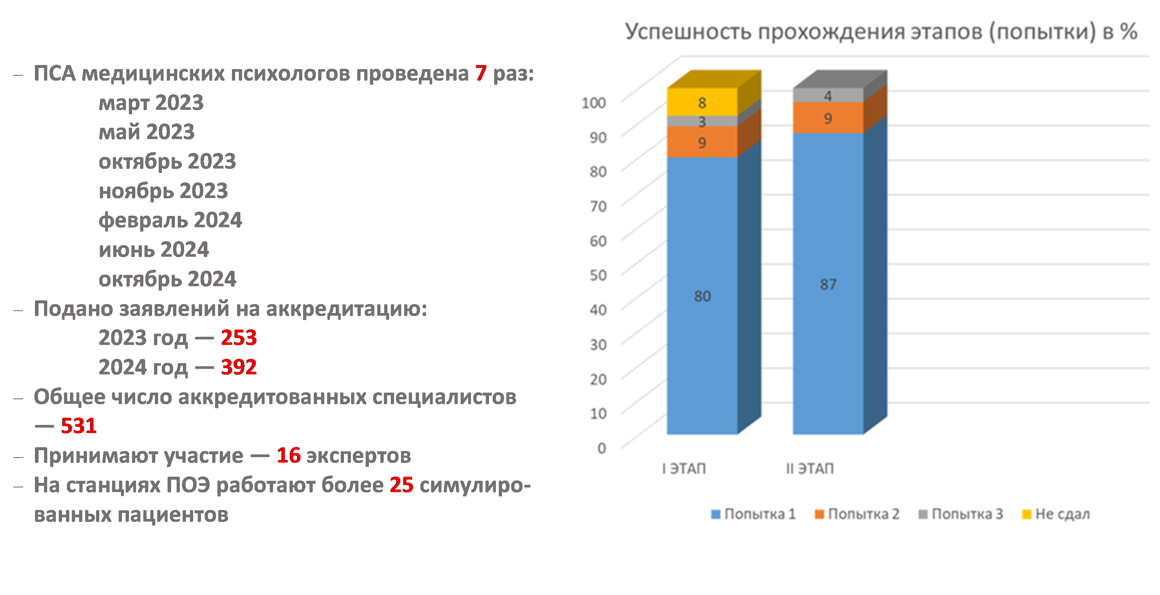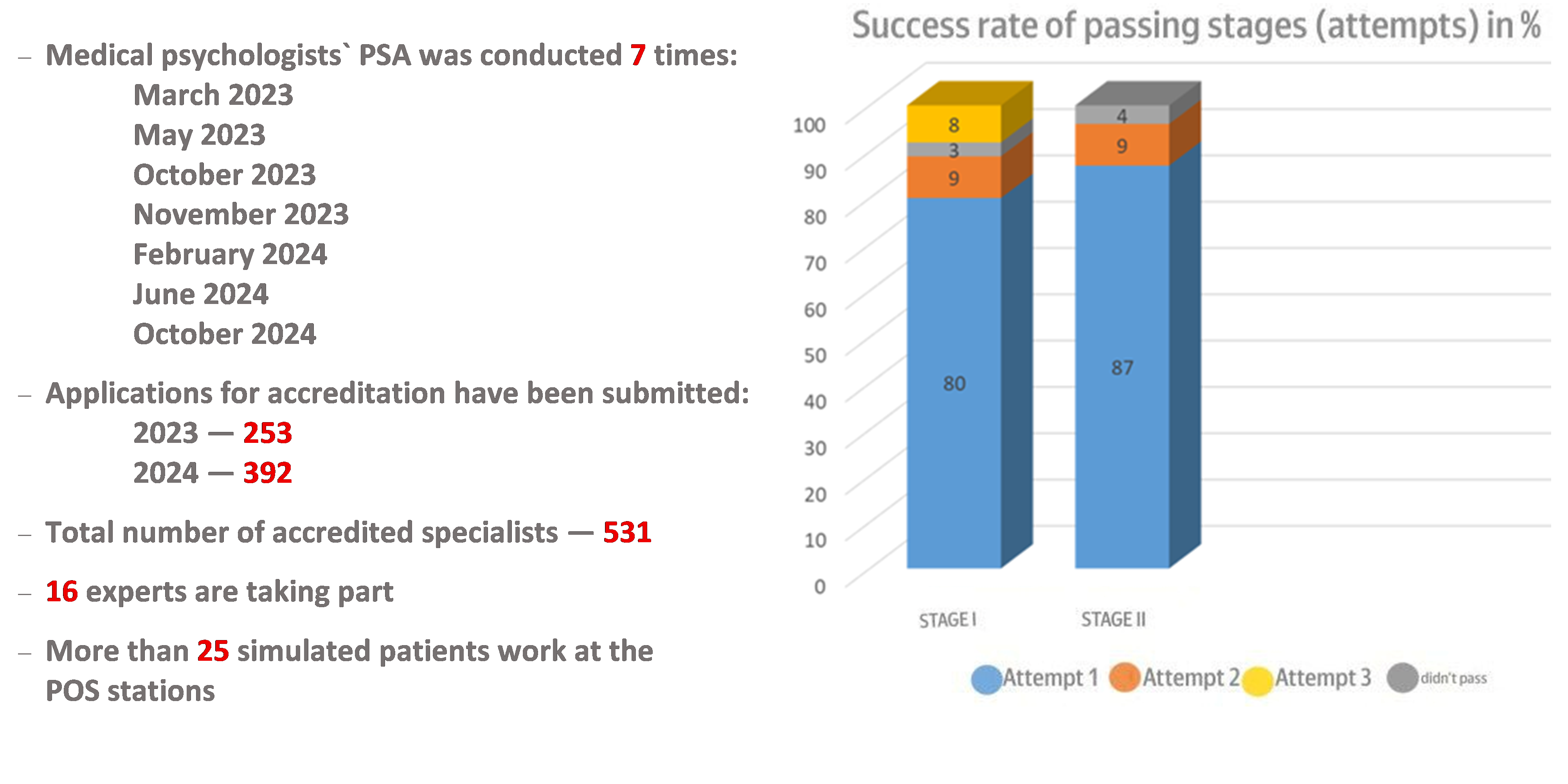 Fig. 1. Histogram of the frequency of successful completion of accreditation stages by medical psychologists in 2023–2024.