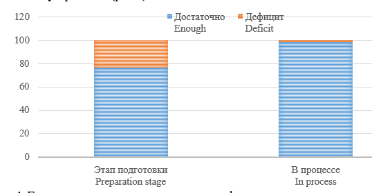 Рис. 4. Гистограмма частот достаточности информации на этапе подготовки и в процессе аккредитации