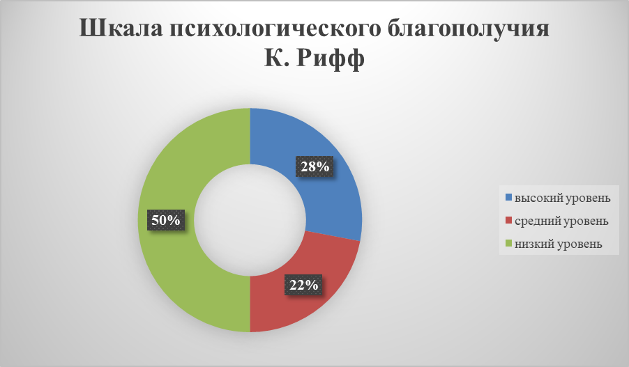 Шкала психологического благополучия К. Рифф, адаптированная Н. Н. Лепешинским, позволяет определить уровень психологического благополучия. Интерпретация результатов: 0—323 балла — низкий уровень психологического благополучия, 324—353 балла — средний уровень, 354 балла и выше — высокий уровень.