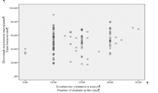 Рис. 1. Зависимость показателей выгорания от количества учеников в классе