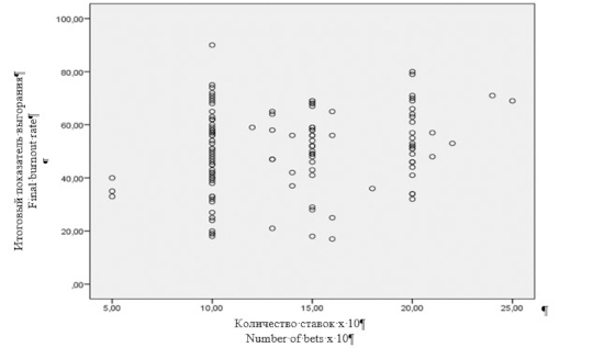 Рис. 2. Зависимость показателя выгорания от учебной нагрузки
