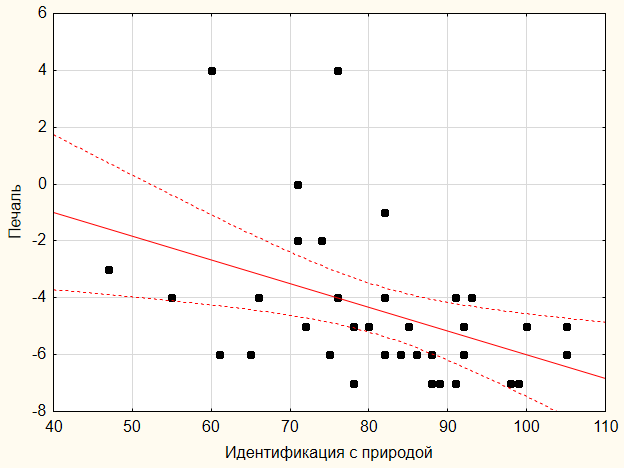 Fig. 5B. The relationship between the indicators “Identification with nature” and the questionnaire on the scale “sadness”
