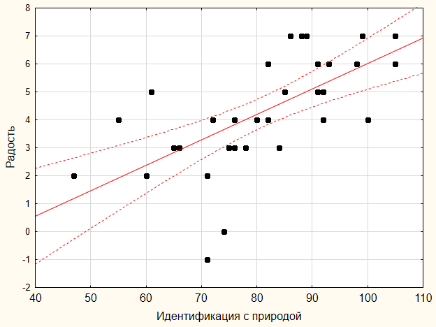 Fig. 5A. The relationship between the indicators “Identification with nature” and the questionnaire on the scale “joy”