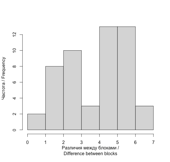 Fig. 1. Distribution of differences between blocks