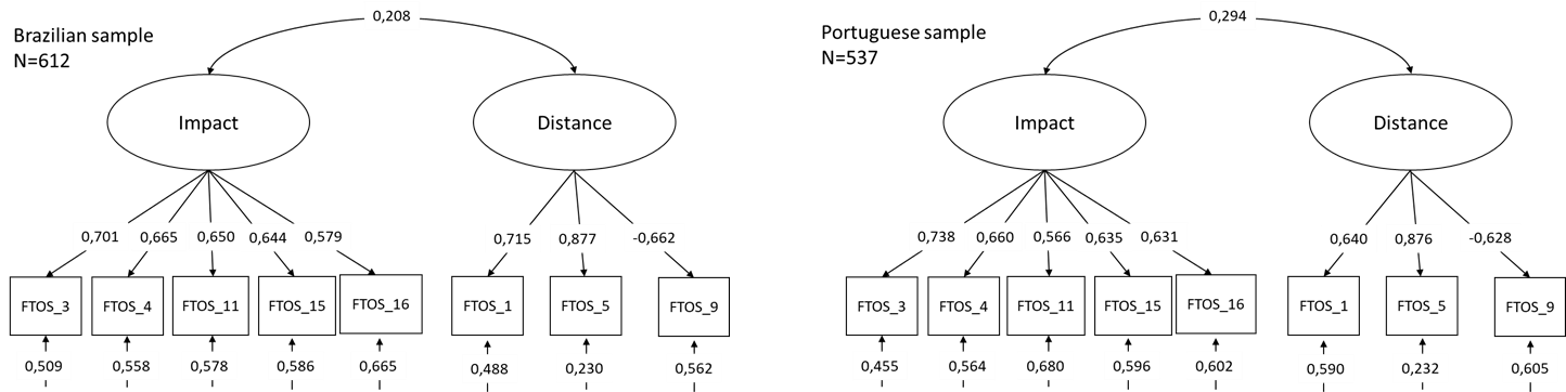 Рис. 1. Факторная структура FTOS (Бразильская и Португальская выборки), (Coscioni, Oliveira, Teixeira, Paixão, 2024)