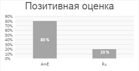 Позитивная оценка в американском и русском деловом дискурсе играет достаточно важную роль в смягчении отказов, но ее использование различается между двумя культурами. Позитивная оценка в нашем материале выражалась двумя способами, через эмоциональную реакцию говорящего и через оценочные суждения о качествах и умениях адресата т.е. то, что в таксономии оценочной теории Мартина и Уайта (Martin, White, 2005) называетcя терминами affect и judgement соответственно. В американском корпусе, позитивная оценка встречалась в 80% отказов, в то время как в русском корпусе всего лишь в 20%. Эмоциональная реакция говорящего у американцев выражалась эмоционально-оценочными глаголами и была встречена в 51% случаев, например: