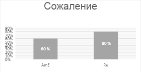 У американцев сожаление выражается несколькими способами, при помощи глагола regret, to be sorry (рус. сожалеть), unfortunately (рус. к сожалению). В русском корпусе данного исследования сожаление всегда выражалось через словосочетание «к сожалению», которое скорее является маркером эмотивной вежливости, а самостоятельным речевым актом, как американские “regret”, “to be sorry”. Таким образом, сожаление в русском языке встречается чаще, но имеет меньшую эмоциональную силу и меньшее намерение выразить сожаление об отказе.
