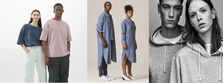 - Бренды, такие как H&M, Zara, Uniqlo2, часто используют гендерно-нейтральные кампании, продвигая унисекс-коллекции. Например, реклама, где модели разного пола носят одинаковую одежду, подчеркивая универсальность стиля.