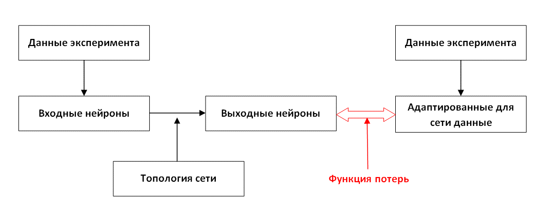 Рис. 3. Схема обучения нейронной сети на основе экспериментальных данных