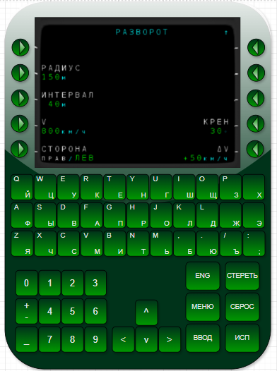 В случае авиационного многофункционального пульта управления (МФПУ) (рис. 1), предназначенного для ввода данных для решения широкого круга функциональных задач, и имеющего сложную разветвленную кадровую структуру (более 100 кадров и до 3 уровней глубины меню), отсутствие строгой методики проектирования приводит к тому, что интерфейсы получаются несогласованными: различается логика переходов по кадрам, могут отличаться алгоритмы ввода данных, именования элементов, цветовое кодирование информации. Это потенциально создает дополнительную когнитивную нагрузку на пилотов, замедляет формирование динамических стереотипов и увеличивает вероятность ошибок, в частности вследствие негативного переноса.