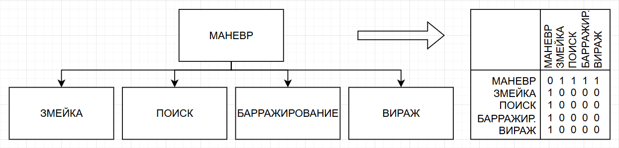 Fig. 5 – Fragment of the task tree for performing automatic maneuvering in HTA notation