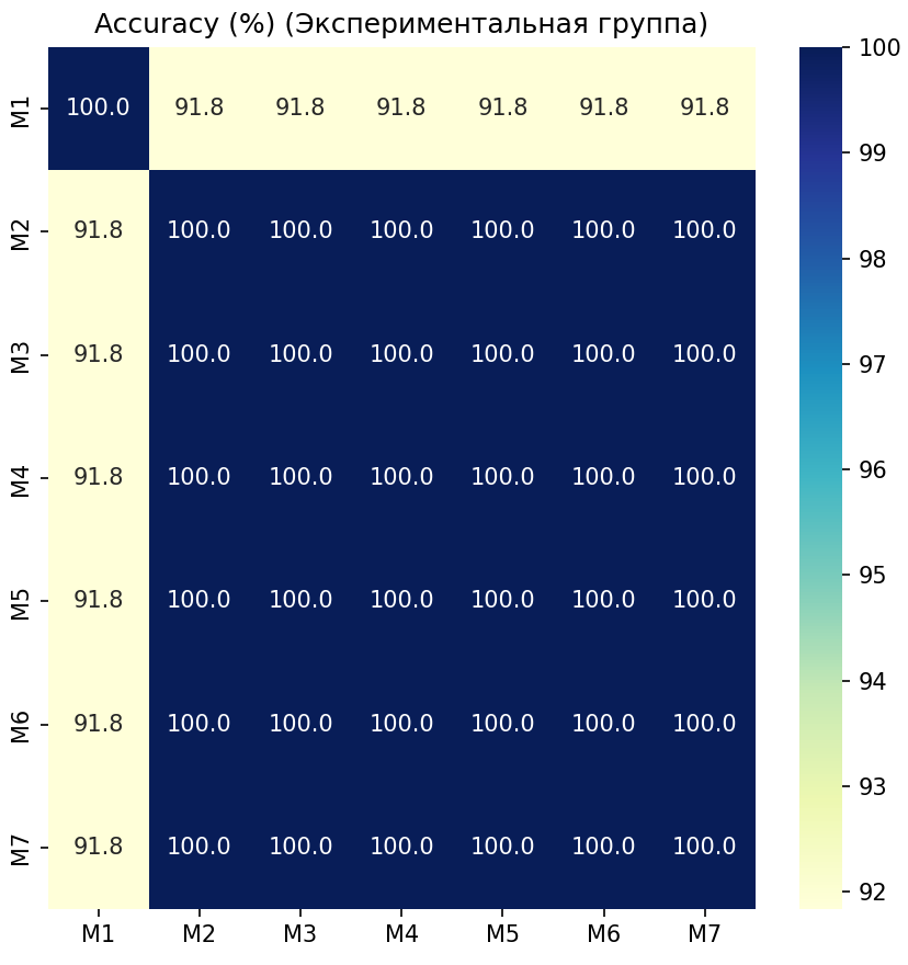 % совпадения для экспериментальной группы |