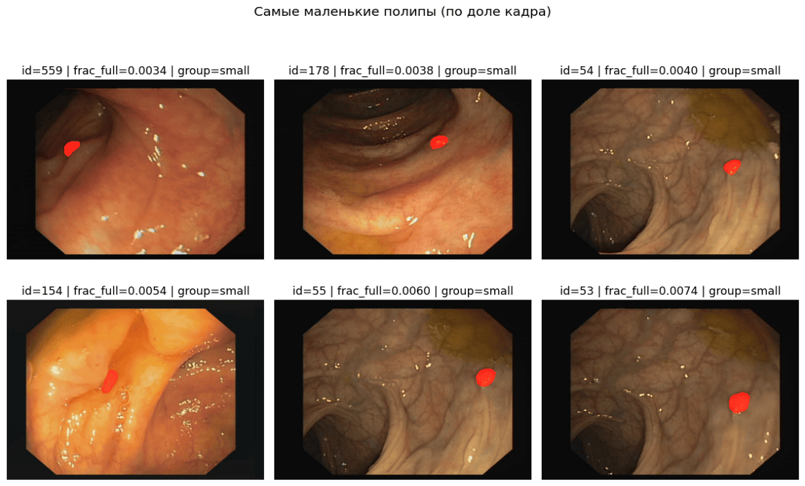Рис. 3. Самые маленькие полипы на тесте: примеры по минимальному frac_full