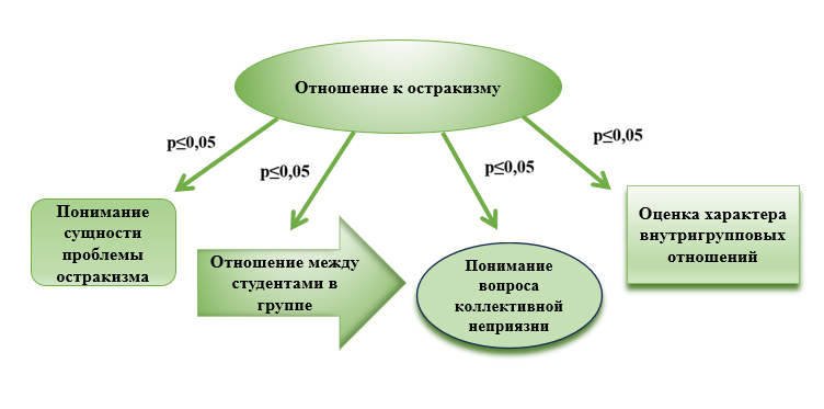 Результаты исследования продемонстрировали, что обучающиеся не только изменили представления о возможности внутригруппового урегулирования ситуации остракизма, но и обрели собственный опыт этого урегулирования. В период осмысления проблемы остракизма с различных позиций формируются новые подходы к проявлению «себя» по отношению к Другому и Другим, конкретной деятельности, ситуациям, что определяют характер взаимодействия индивидуума в группе в будущем.