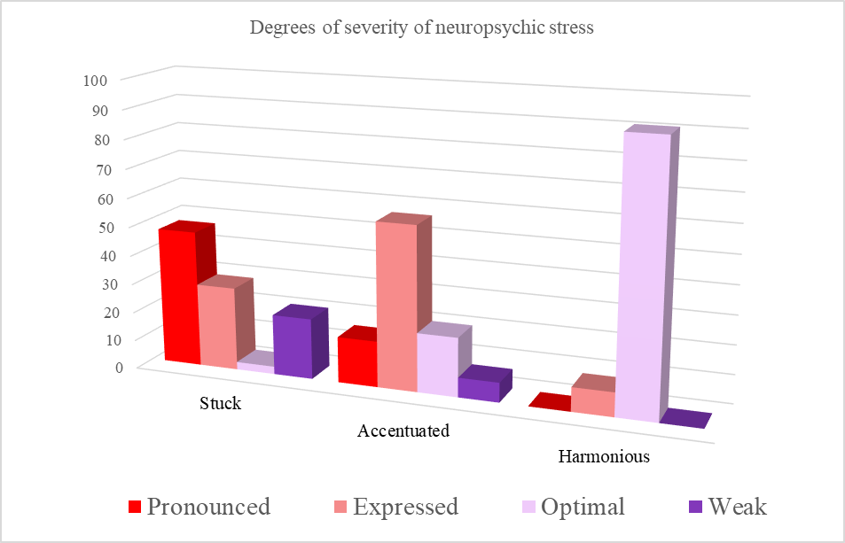 Соотнесение итогов распределения участников по уровням эмоционально-соматической напряженности и когнитивной активности, степеням нервно-психического напряжения с результатами диагностики ПВ позволило установить, что гармоничный профиль ПВ является предиктором оптимального уровня компенсаторно-приспособительных механизмов к учебной нагрузке, тогда как дисгармоничные профили являются предиктором низкого уровня компенсаторно-приспособительных механизмов к учебной нагрузке.