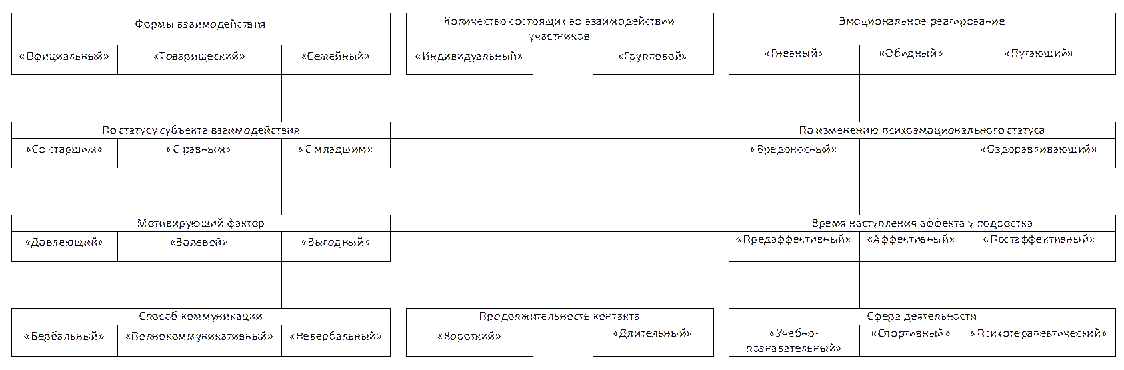 - «товарищеский», где контакт подростка осуществляется с негативно значимым сверстником, вне выполнения обязательной совместной деятельности.