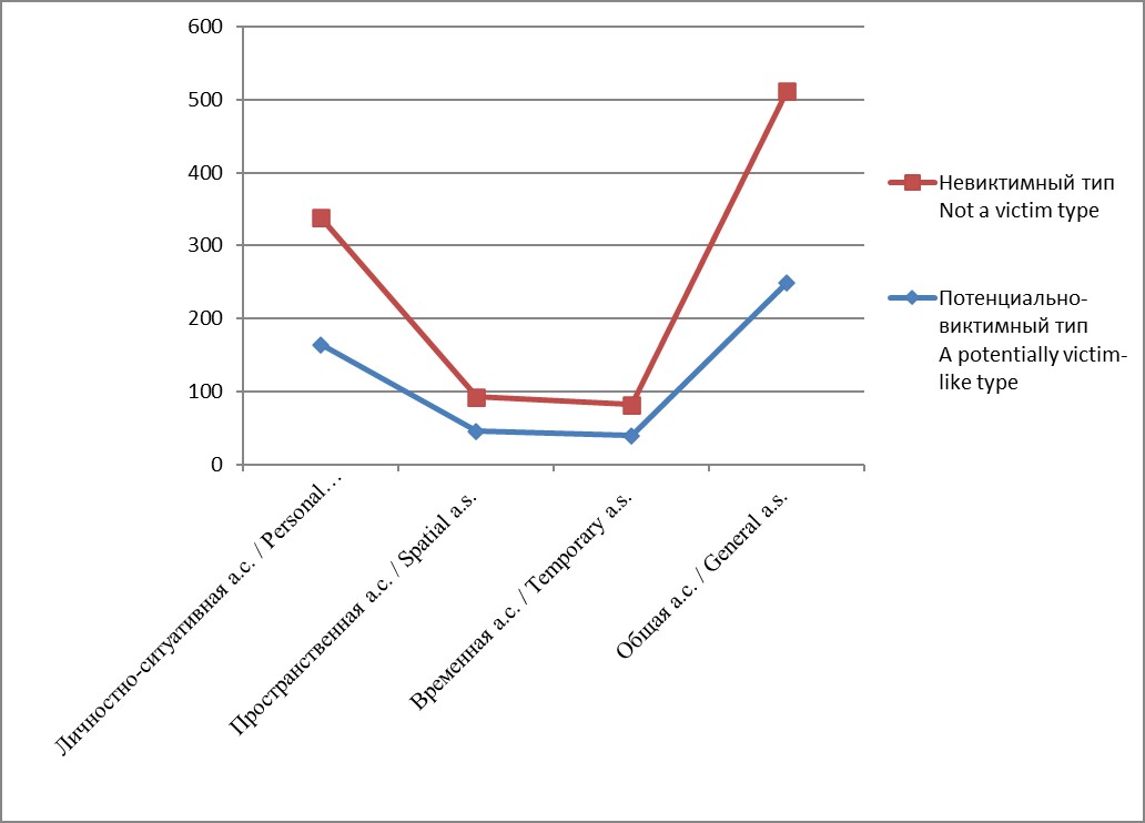 потенциально виктимного и невиктимного типов по методике