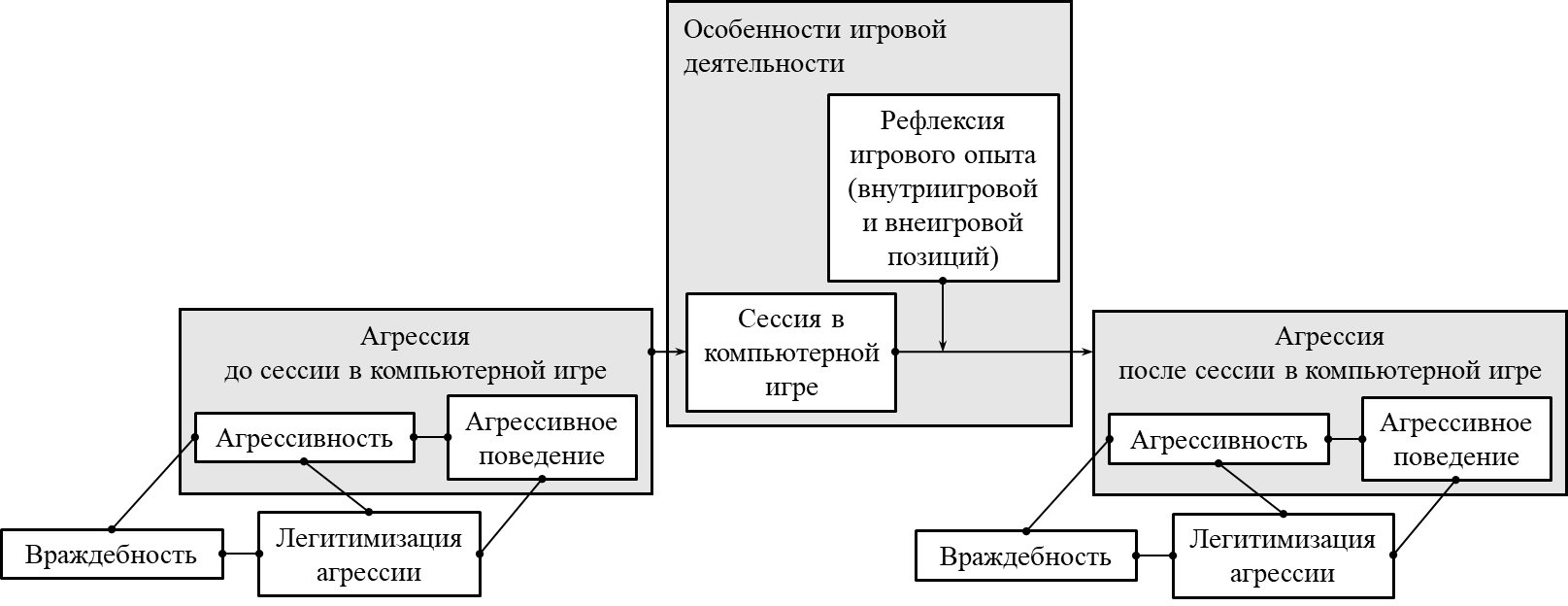 3. Связь между участием в компьютерной игре и последующими агрессивными тенденциями опосредована спецификой полученного опыта, которая зависит от способности занять двусубъектную позицию и, соответственно, осуществлять игровую деятельность в видеоигре. Предполагается, что особенности игрового опыта, переработанного в ходе рефлексии, влияют на наличие, а также на характер этой связи.