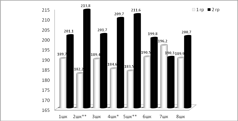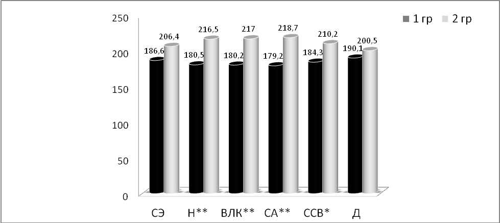 Статистически значимые различия по показателям теста между группами по U-критерию Манна — Уитни: * р = 0,05; ** р = 0,01.