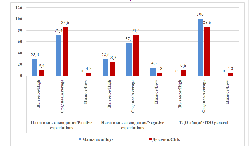 Исследование социального благополучия приемных детей по тесту диспозиционного оптимизма (далее — ТДО) подразумевает разделение на группы по половому признаку (рис. 2).