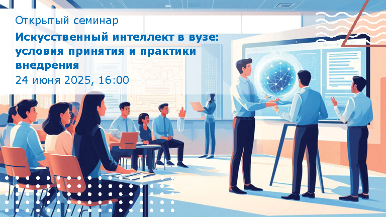 24 июня в 16:00 состоится открытый семинар «Искусственный интеллект в вузе: условия принятия и практики внедрения», который посвящен актуальной теме быстрого развития ИИ и его влияния на систему высшего образования. В рамках мероприятия участники смогут ознакомиться с современными исследованиями, кейсами и стратегиями внедрения технологий искусственного интеллекта в университетскую среду.