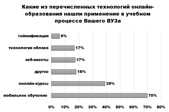 Среди непосредственных технологий, используемых в вузах респондентов, назывались следующие (рис. 2).