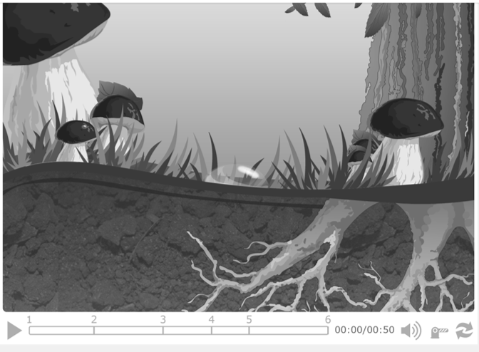 Данная анимация выбрана для анализа, поскольку имеет признаки дружелюбного интерфейса, такие как очевидность навигации, отсутствие трудностей в использовании, а также адекватность содержания задачам обучения в начальной школе по курсу «Окружающий мир». В анимации, которая продолжается примерно одну минуту, показано, как в течение нескольких лет развивается гриб (мицелий) и плодовые тела.
