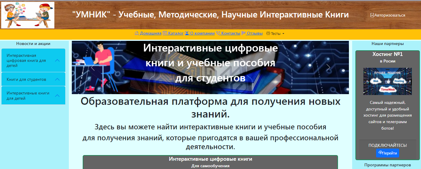На образовательной платформе «УМНИК» авторы (преподаватели и научные работники) имеют возможность самостоятельно разместить интерактивные учебно-методические материалы в виде файлов PDF, а ученики будут иметь доступ к ним с любого устройства, в любом месте и в любое время. При этом кроме текстового материала цифровые книги могут быть дополнены аудио или видео уроками, динамическими gif-рисунками, примерами программ с редакторами программного кода, инструментарием для запуска в работу программных модулей.
