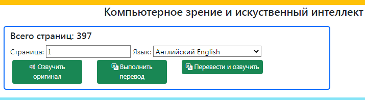 Такой подход к предоставлению учебного материала можно реализовать на специализированных интернет платформах с использованием нейронных сетей и элементов искусственного интеллекта. Большинство образовательных платформ не предоставляют возможность загрузить и показать цифровую книгу с встроенным интерактивным образовательным контентом, поскольку это требует размещения на публичных серверах специальных сервисов для перевода и озвучивания учебного материала. Исходя из вышеизложенного, создание интерактивных учебников и развитие образовательных платформ с элементами искусственного интеллекта является актуальной задачей.